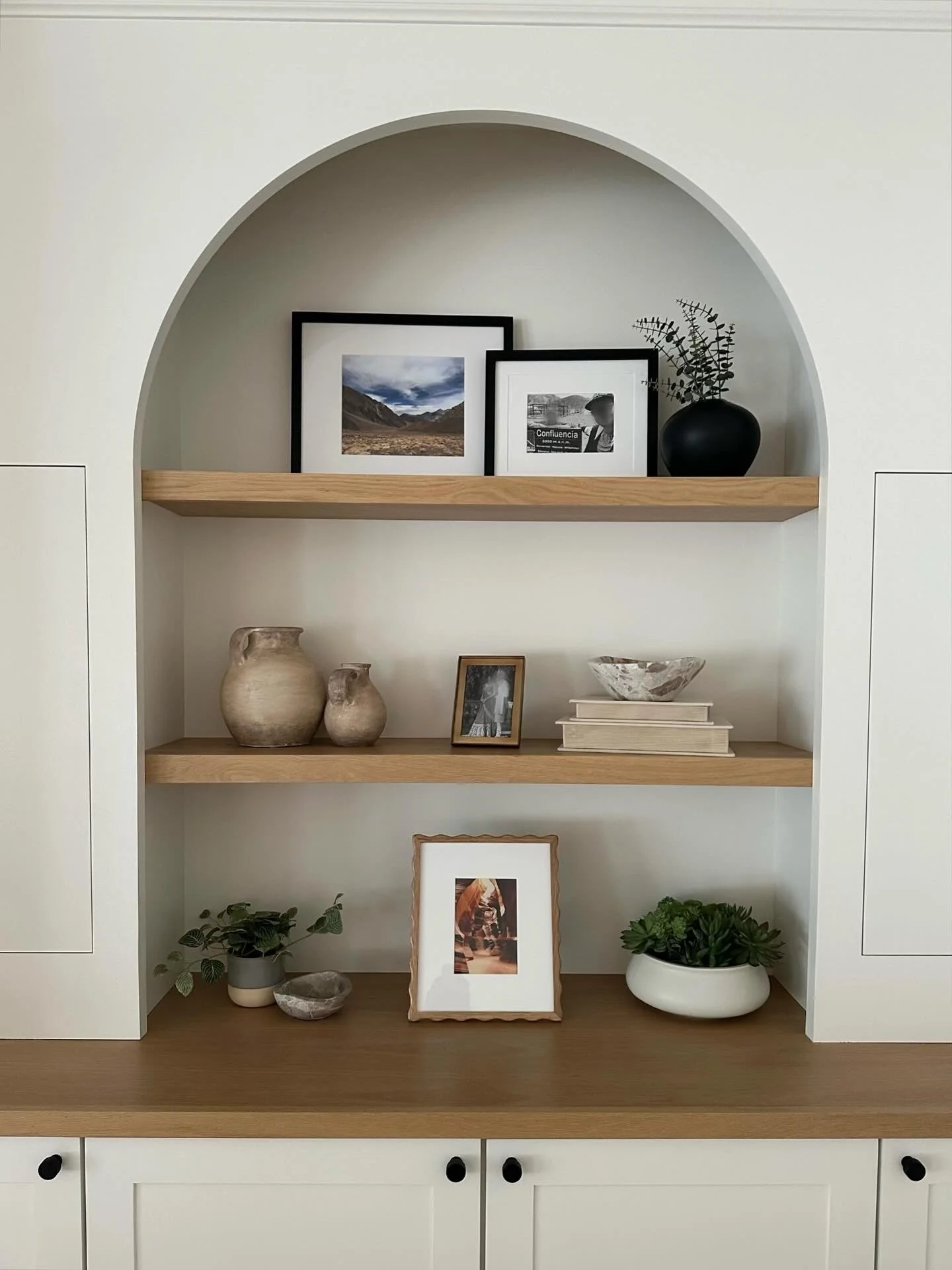 This project transforms a builder-grade home into a warm and sophisticated space. Light wood tones create an inviting foundation, while black accents add contrast and depth. With a clean modern style, we introduced subtle details and textures to bring character and personality to the home, making it feel both refined and welcoming.