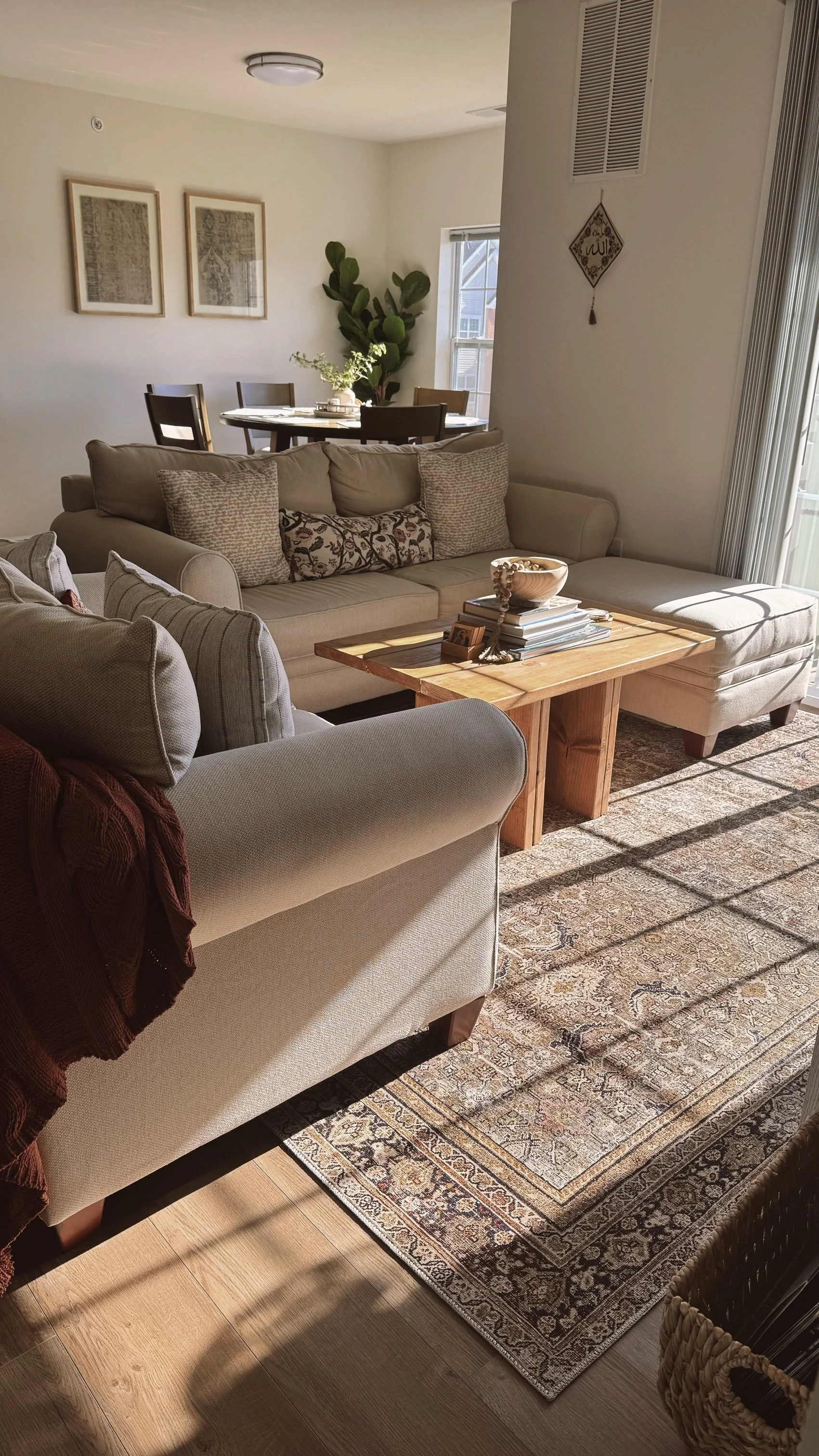 We reimagined this loft apartment in the organic modern style, resulting in a cozy and sophisticated space. The design incorporates a muted color palette, emphasizing natural textures and clean lines to create a serene and inviting atmosphere inspired by nature.